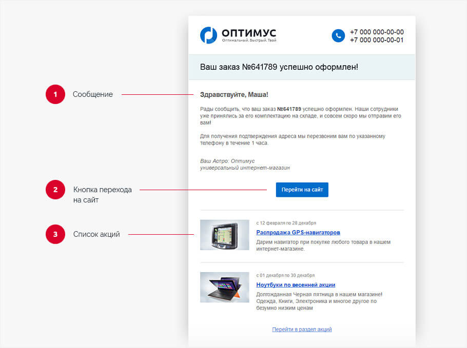 Пример: после регистрации пользователь получает серию из приветственного письма, списка акций и специальных предложений, подборки персональных рекомендаций на основе просмотренных товаров и купона со скидкой на первый заказ.