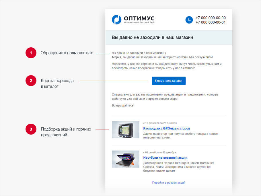 В этом письме можно подарить скидку, сертификат, рассказать о конкурсах или акциях с призами. Или просто напомнить о том, какие вы хорошие.